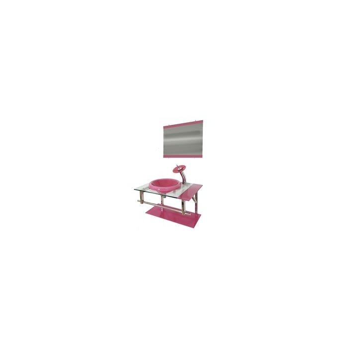 GABINETE DE VIDRO 70CM IQ INOX COM CUBA CHAPÉU REDONDA - ROSA