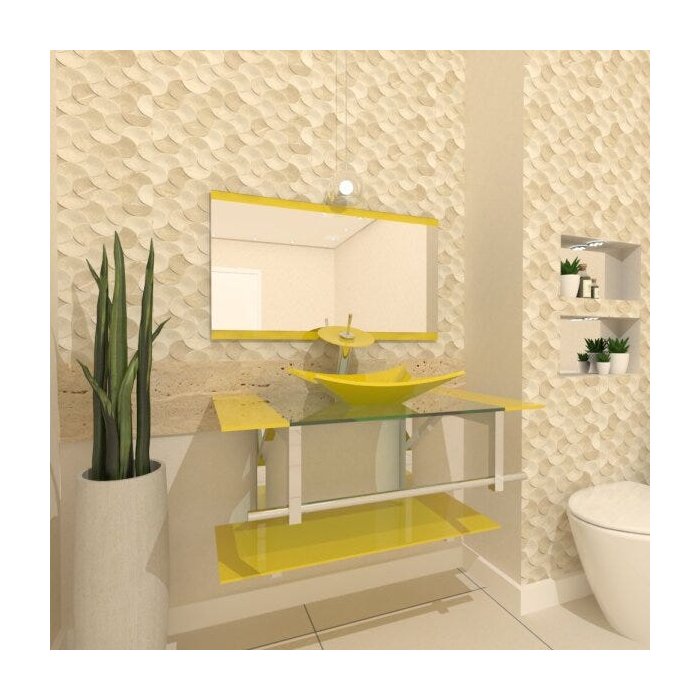 GABINETE DE VIDRO 90CM IQ INOX COM CUBA RETANGULAR - AMARELO Amarelo