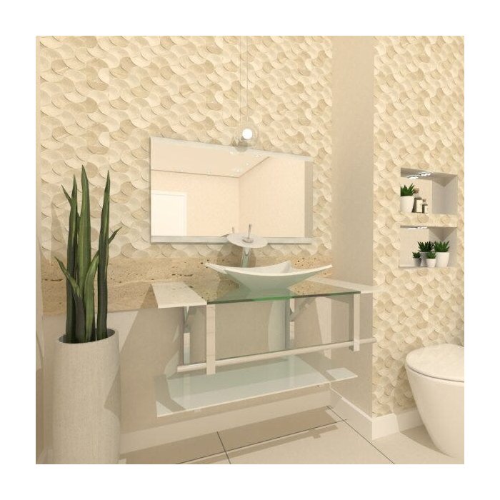 Dimensões:- Bancada de Vidro: 90 x 45 cm (largura x profundidade)- Cuba de Vidro: 39x32 cm (largura x cumprimento)- Prateleira Bancada: 80 x 25 cm (largura x profundidade)- Espelheira: 80 x 45 cm (largura x  altura)- Porta Toalha: 80 cm (largura)- VálvulaEspessuras:- Bancada de Vidro: 8 mm- Cuba de Vidro: 10 mm- Prateleira Bancada: 6 mm- Espelheira: 3 mmGarantia: 12 meses (conforme política de troca e devoluções).Atenção: Preço referente somente ao gabinete, não acompanha torneira, sifão e acessórios.Montagem: Montagem e instalação não inclusa na venda ou preço do produto, elas são de inteira responsabilidade do cliente.* Imagens Ilustrativas.