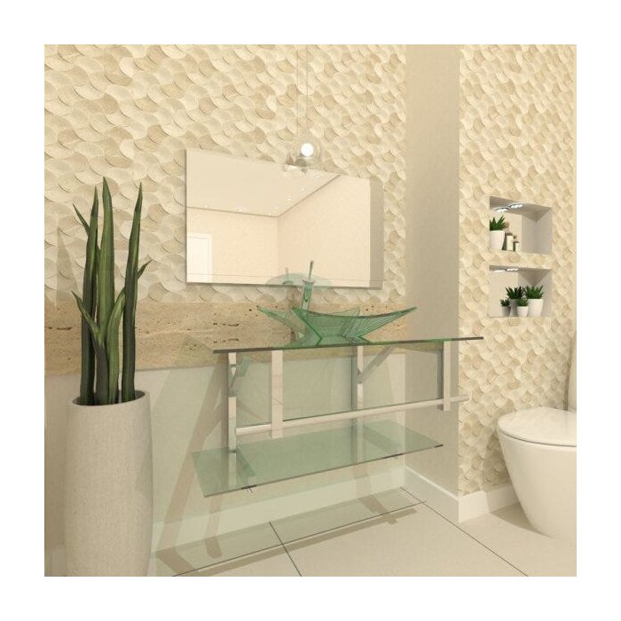 Dimensões:- Bancada de Vidro: 90 x 45 cm (largura x profundidade)- Cuba de Vidro: 39x32 cm (largura x cumprimento)- Prateleira Bancada: 80 x 25 cm (largura x profundidade)- Espelheira: 80 x 45 cm (largura x altura)- Porta Toalha: 80 cm (largura)- VálvulaEspessuras:- Bancada de Vidro: 8 mm- Cuba de Vidro: 10 mm- Prateleira Bancada: 6 mm- Espelheira: 3 mmGarantia: 12 meses (conforme política de troca e devoluções).Atenção: Preço referente somente ao gabinete, não acompanha torneira, sifão e acessórios.Montagem: Montagem e instalação não inclusa na venda ou preço do produto, elas são de inteira responsabilidade do cliente.* Imagens Ilustrativas.