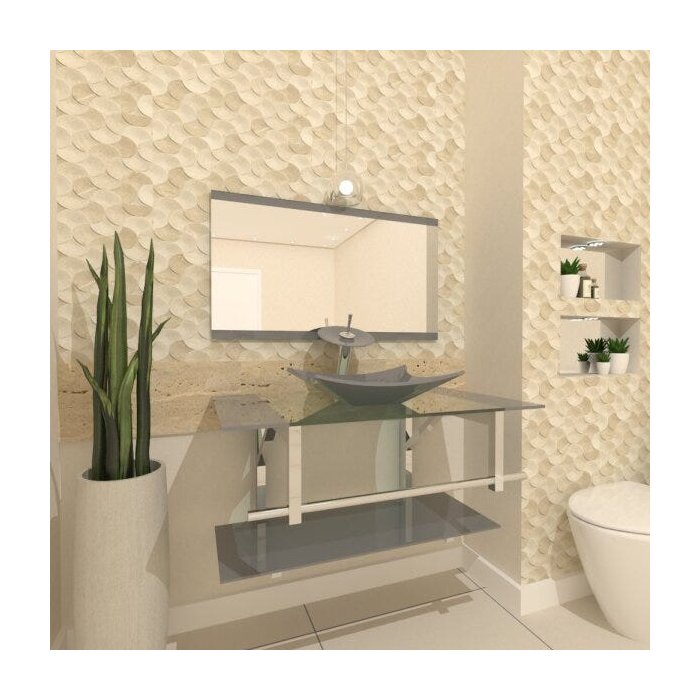 Dimensões:- Bancada de Vidro: 90 x 45 cm (largura x profundidade)- Cuba de Vidro: 39x32 cm (largura x cumprimento)- Prateleira Bancada: 80 x 25 cm (largura x profundidade)- Espelheira: 80 x 45 cm (largura x  altura)- Porta Toalha: 80 cm (largura)- VálvulaEspessuras:- Bancada de Vidro: 8 mm- Cuba de Vidro: 10 mm- Prateleira Bancada: 6 mm- Espelheira: 3 mmGarantia: 12 meses (conforme política de troca e devoluções).Atenção: Preço referente somente ao gabinete, não acompanha torneira, sifão e acessórios.Montagem: Montagem e instalação não inclusa na venda ou preço do produto, elas são de inteira responsabilidade do cliente.* Imagens Ilustrativas.