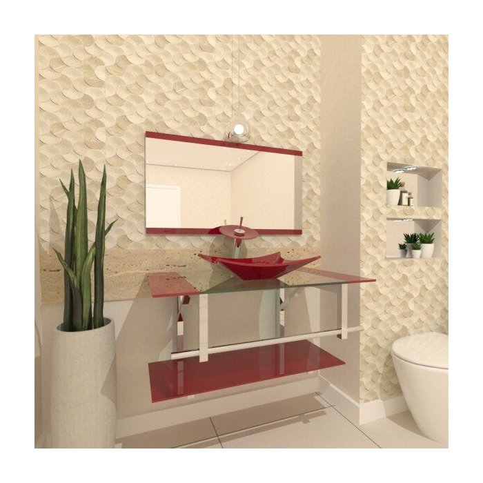 GABINETE DE VIDRO 90CM IQ INOX COM CUBA RETANGULAR - VERMELHO CEREJA Cereja