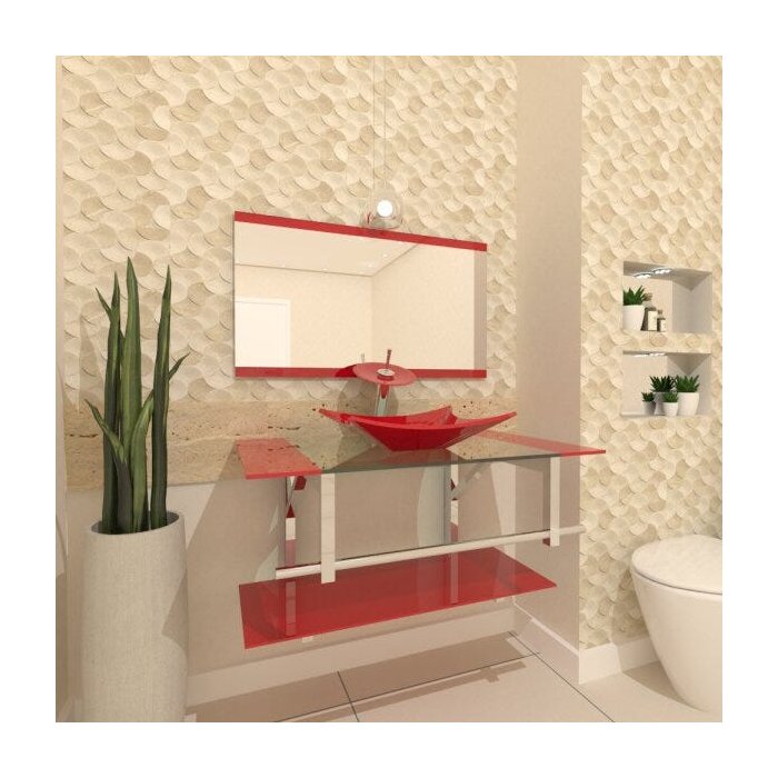 GABINETE DE VIDRO 90CM IQ INOX COM CUBA RETANGULAR - VERMELHO FERRARI Vermelho Ferrari