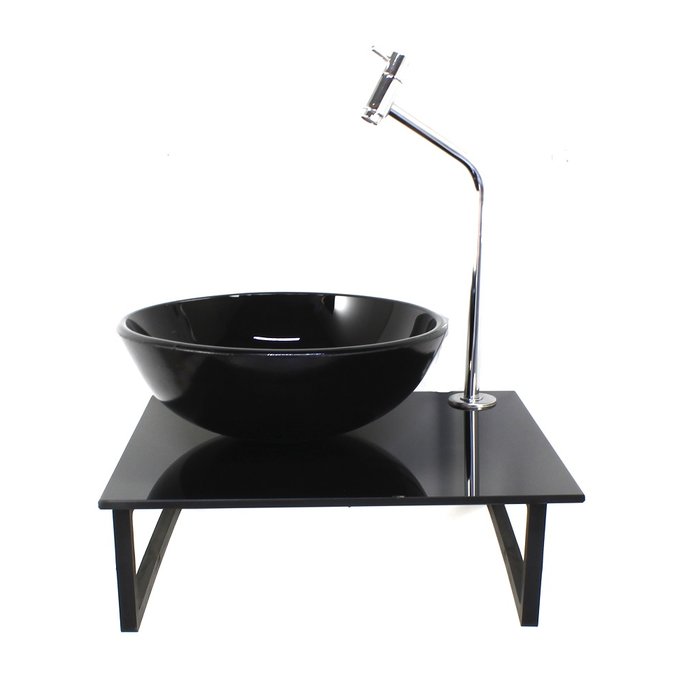 GABINETE DE VIDRO COM CUBA REDONDA COM TAMPO 40CM PRETO FULL