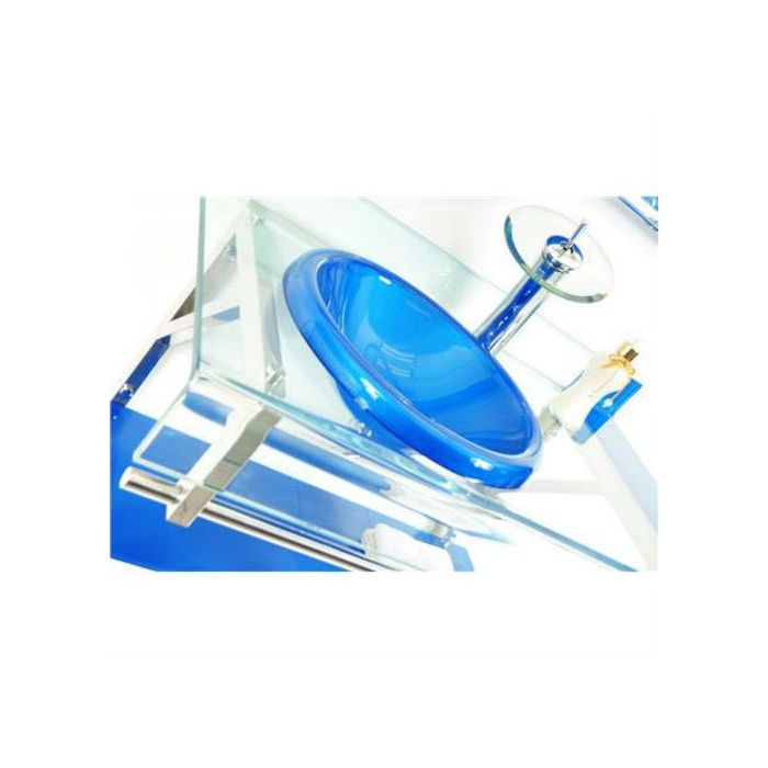 Gabinete de vidro completo azul 90x53+válvula+sifão