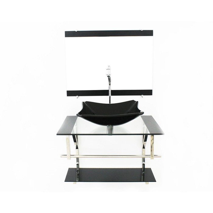 Gabinete De Vidro Inox Com Cuba Retangular Chanfrada PretoOs vidros são pintados com tinta de alta performance o que lhe garante a permanência da cor original.Itens Inclusos:- Bancada de vidro com furo para torneira (3,5cm diâmetro) e válvula click (4,5Cm diâmetro);