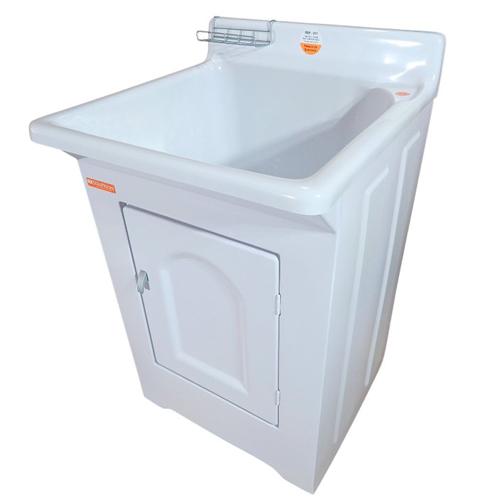 Desenvolvidos para você que possui espaço limitado, mas não abre mão da praticidade trazida por nosso tanque. Cuba em fibra de vidro com cantos arredondados e pintura em gel coat isofitálico que torna o produto mais durável e brilhoso. Design exclusivo com proteção de parede contra respingos d'água e porta sabão. Possui gabinete em ABS com excelente acabamento interno e uma porta que permite armazenar acessórios e materiais de limpeza.