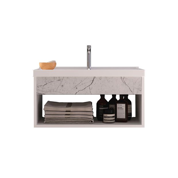 Gabinete Nicho Suspenso para Banheiro com Lavatório Beta Branco com Marmorizado Branco - Cerocha