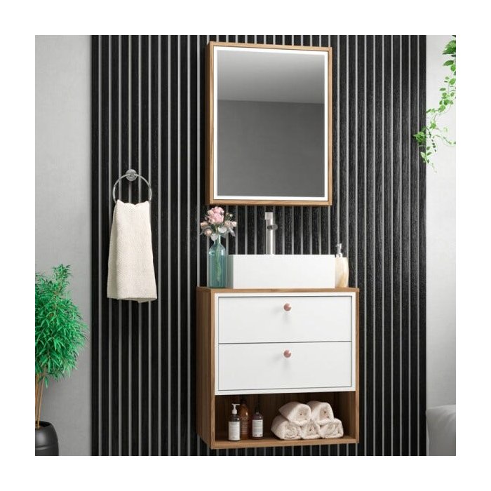 Gabinete para Banheiro 02 Gavetas com Cuba e Armário Gael 60cm - Móveis Bosi