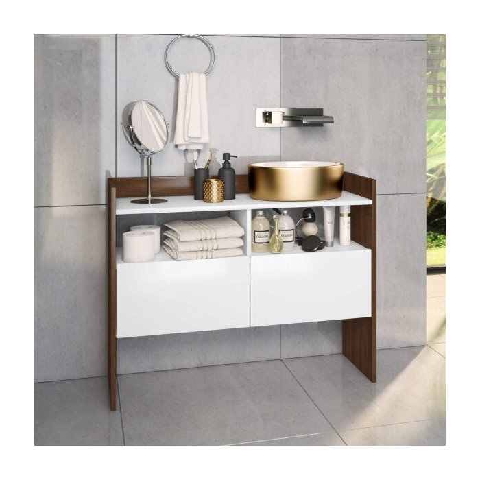 A Estilare tem o móvel ideal para você, bom gosto e design diferenciado é o que marcam esse lindo móvel de banheiro. Produzido em MDP com acabamento em BP, (resistente a riscos e manchas). Com 2 portas e 2 nichos para organizar, além de dar um toque sofisticado para seu ambiente.