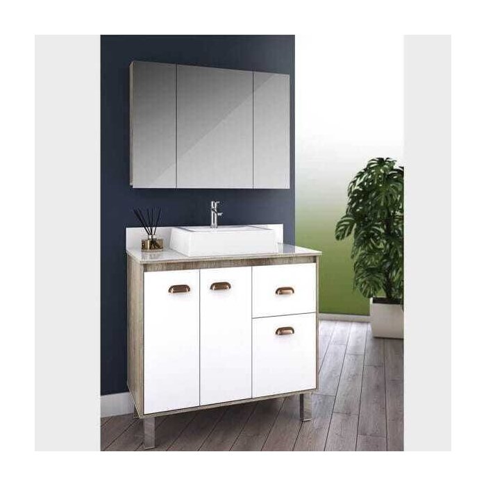 O conjunto conta com um balcão, espelheira e cuba. Por possui um balcão com duas portas, uma gaveta e um cesto, é ideal para você que precisa de um bom balcão que tenha lugar suficiente para guardar objetos e utensílios. Além desses compartimentos, também possui uma espelheira grande, com portas, oferecendo ainda mais espaços.