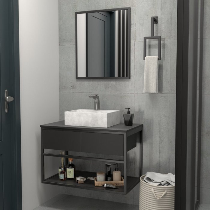 Gabinete para Banheiro 80cm Estilo Industrial Iron Rustico Preto Fosco