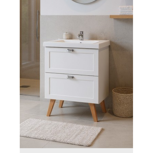 Com 60 cm de largura, 83 cm de altura total com os pés e 40 cm de profundidade, o balcão é fabricado 100% em MDF e conta com 3 gavetas espaçosas, sendo uma delas interna com recuo para o encanamento. Acompanha uma cuba em mármore sintético.