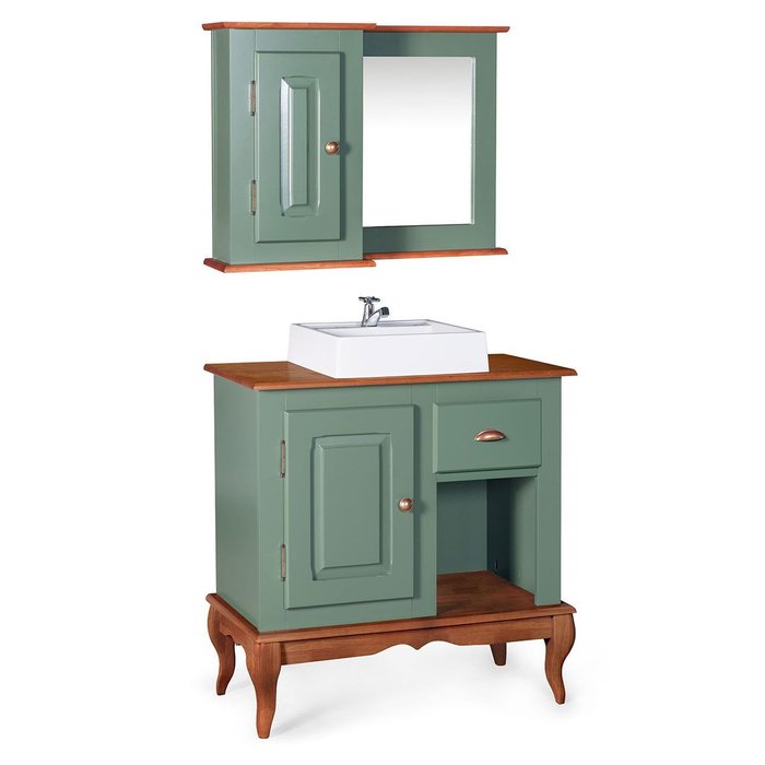 Gabinete para Banheiro com Cuba e Armário Espelheira Dália 3064 Verde Musgo/Garapa Glazer