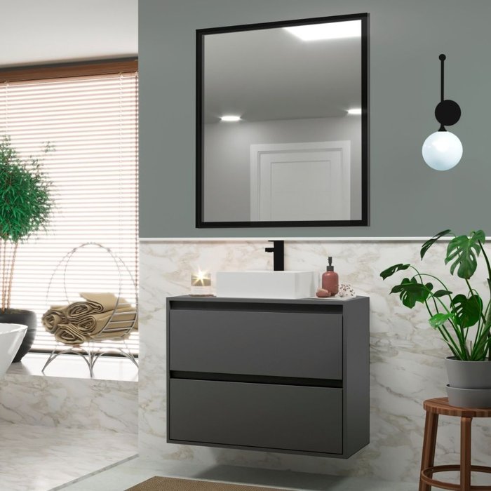 Gabinete para Banheiro com Cuba e Espelheira 80cm Mdf Grafite e Alumínio Preto Dubai - On Móveis