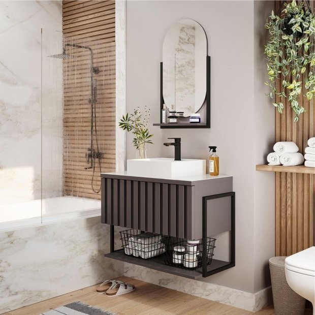 Conjunto para Banheiro com Gabinete Helsing e Espelheira Bogotá Espresso Móveis é formado por Gabinete para Banheiro 100% MDF e Metalon e Cuba em Mármore Sintético, Espelheira com Prateleira em MDF, acabamento em pintura BP. Com amplo espaço interno, ele conta com porta basculante com pistão à gás, além de puxadores de alumínio. Características que garantem melhor mais durabilidade e resistência ao produto. Aproveite e adquira já o seu gabinete de banheiro para deixar o seu ambiente ainda mais charmoso, sofisticado e elegante.