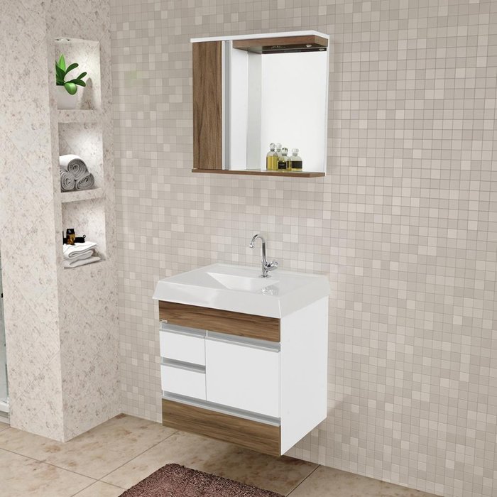 Gabinete para Banheiro com Cuba e Espelheira Aj Rorato Nápole 1 Porta Nogal