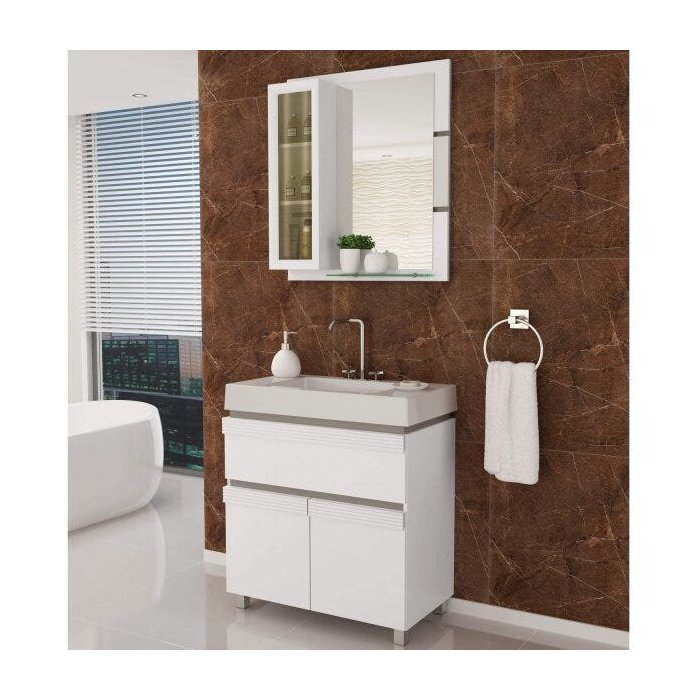 Gabinete para Banheiro com Cuba e Espelheira Grécia 80 Balcony Branco Supremo/Connect