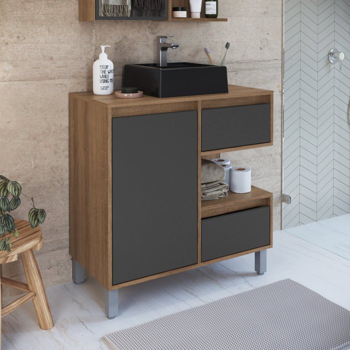O balcão gabinete BL2001 da Faema é perfeito para fazer parte do seu banheiro. Possui design moderno e sofisticado e vai deixar sua casa elegante e confortável! Possui 1 porta com bastante espaço interno e 2 gavetas onde você poderá organizar seu pertences pessoais. Possui também um nicho onde poderá ser colocado objetos de decoração ou demais itens. Possui pés. Acompanha cuba preta.
