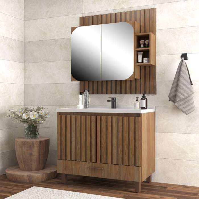 Gabinete para Banheiro com Espelheira Ripado Noce