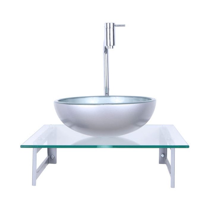 CARACTERÍSTICAS: Ideal para seu banheiro ou lavabo, o conjunto Gabinete + Cuba + Torneira + Válvula Click da Vitorelli Acabamentos une beleza e qualidade, disponível em diversas cores, não vai faltar opção que combine com sua decoração. BRINDE: 1 Sifão ESPECIFICAÇÕES: Gabinete Material: Tampo de Vidro temperado e suporte de metalon com pintura eletrostática na cor prata. Medidas: 46cm x 40cm x 15cm Cuba Material: Vidro Temperado Medidas: 30cm x 30cm x 11cm Torneira Link Torneira de bica alta para lavatório, Cromado com estilo próprio . marcada pela combinação da funcionalidade, beleza, alta qualidade. O resultado é uma linha com perfeita combinação Altura total: 35 cm Largura: 2cm Bico: 7,5 cm comprimento Largura: 3,3 cm Válvula Click - Altura Total:10 Cm - Altura Saída de Água: 8 Cm - Profundidade: 4 Cm - Furação: 4 Cm - Material: Bronze Com Inox Polido - Função: Escorrer a Água, Evita odores.