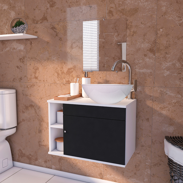 Transforme seu banheiro em um espaço de elegância e sofisticação com o Gabinete para Banheiro de Madeira com Cuba 60cm Suspenso.