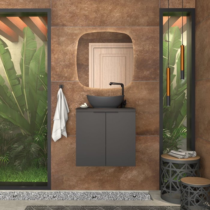 Gabinete Para Banheiro Em Aço Com Tampo De Vidro Umbu Sem Cuba Preto