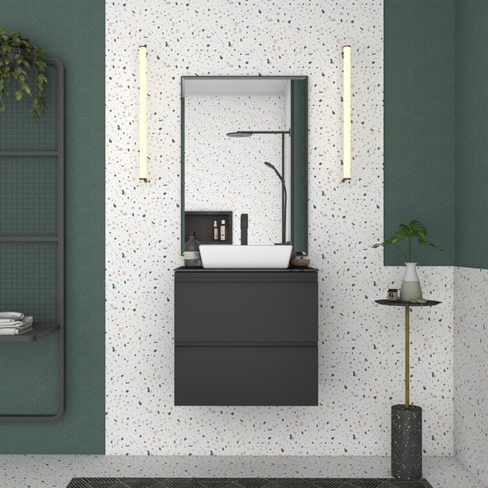 Gabinete para Banheiro em Aço Gaia com Tampo de Vidro Preto