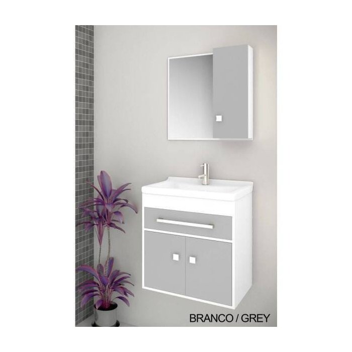 Gabinete para Banheiro Kit Vegas 50cm - Balcão + Espelheira + Marmorite - Branco Grey