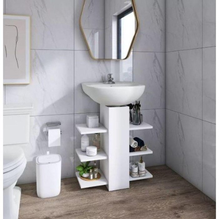 Gabinete para Banheiro Lavatório Pia de Coluna com Prateleira Organizadora