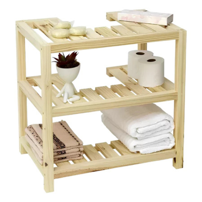 Gabinete para Banheiro Pia Coluna, Estante de Madeira com 3 Prateleiras - Casa Morais