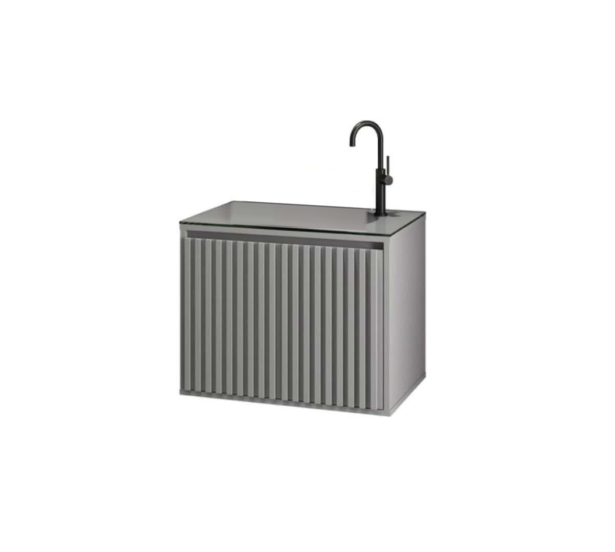 Gabinete para Banheiro Ripado 60 Cinza Sem Cuba Suspenso Cinza Matt