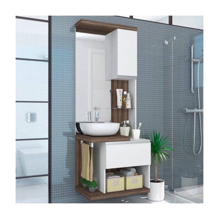 Gabinete para Banheiro sem Cuba com Espelheira Paris Espresso Móveis Nogal Sevilha/Branco