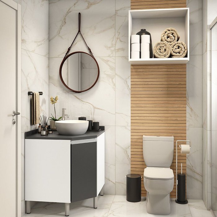 Gabinete para Banheiro sem Furação com Nicho Branco com Preto Suprema Luciane Móveis