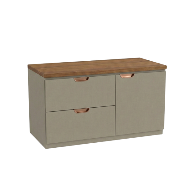 O móvel conta com duas gavetas amplas, perfeitas para organizar itens de higiene, cosméticos e acessórios do dia a dia. Além disso, possui uma porta com divisória interna, criando dois compartimentos práticos para melhor aproveitamento do espaço interno.