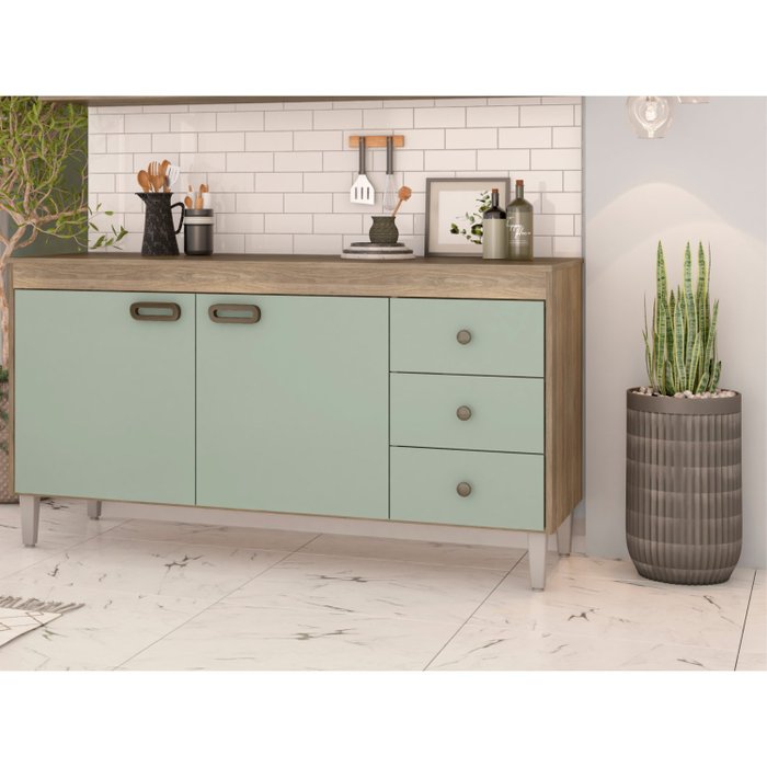 Gabinete para Pia 150 2 Portas 3 Gavetas Bréscia Verde
