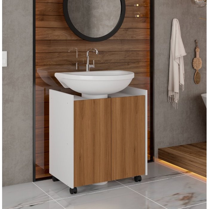 Gabinete para Pia de Banheiro Eccos Naturale com Branco - Casa JD Móveis