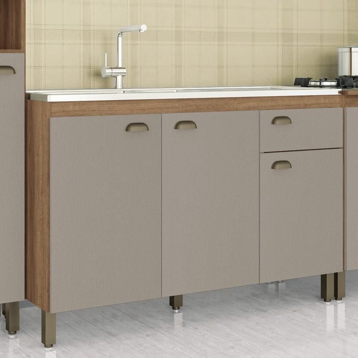 Com a possibilidade de ser usado como pia, esse descomplicado e elegante balcão possui amplo espaço interno para guardar todos seus utensílios de cozinha, tendo como objetivo a máxima praticidade. Fabricado em MDP, possui 1 gaveta, 3 portas e 1 prateleira interna. NÃO POSSUI TAMPO. Especificações: - Comprimento: 120 cm - Largura: 51,5 cm - Altura: 80 cm - 3 Portas - 1 Gaveta - 1 Prateleira Interna - Pés com regulagem de altura - NÃO POSSUI TAMPO - Recomendação de Limpeza: Limpar com pano seco para retirar o pó. Não aplicar produtos abrasivos. - Produtos de Enfeite e Eletrônicos Não Estão Inclusos.