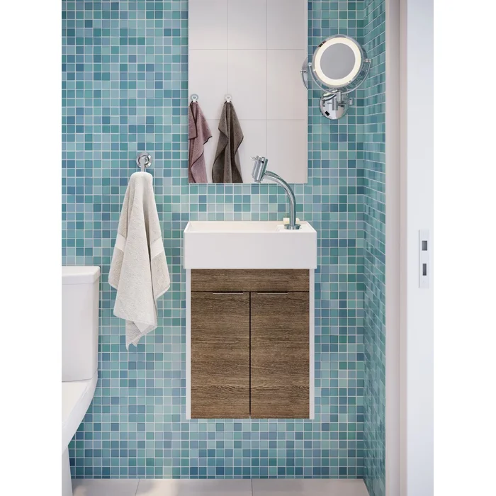 Gabinete Suspenso 2 Portas com Cuba e Espelho Saveiro Celite