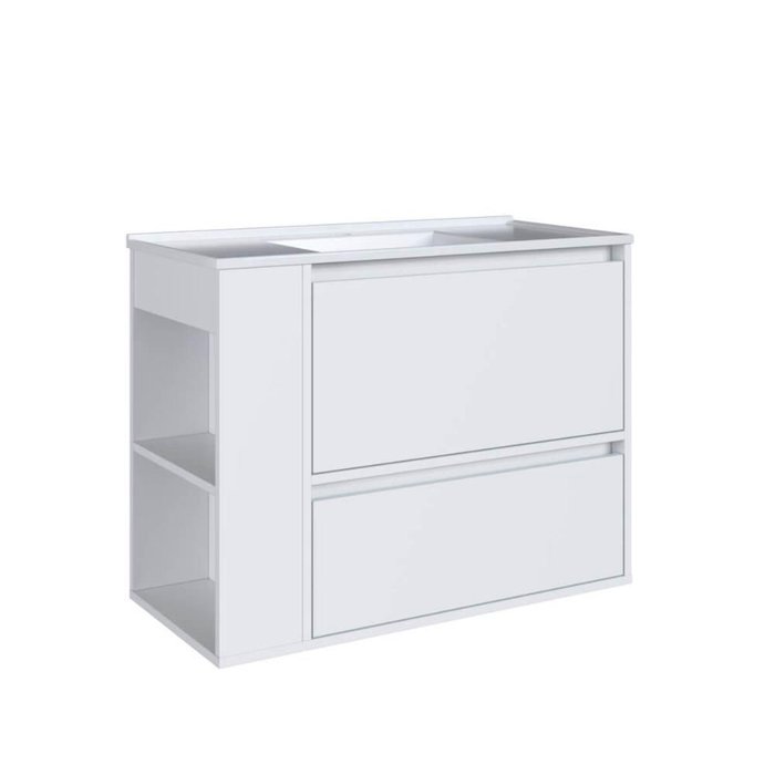 Gabinete Suspenso 80cm Estela Branco com Lavatório 1 Gavetão Basculante de Banheiro