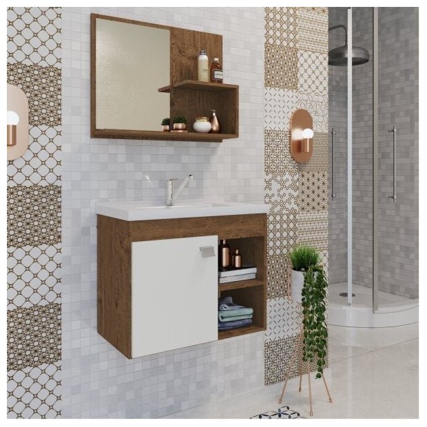 O Gabinete suspenso para Banheiro com Cuba Bia é desenvolvido com estrutura em MDF 12 mm/MDP 15 mm, acabamento em pintura U.V.. Com Cuba em mármore sintético, puxador plástico polipropileno, características que garantem melhor mais durabilidade e resistência ao produto. Além disso tudo, o conjunto ainda acompanha uma linda Espelheira com espelho 3 mm, 1 prateleira e 1 nicho para você guardar sua escova de dentes, creme dental, etc. Aproveite e adquira já o seu conjunto para deixar o seu ambiente ainda mais charmoso e elegante.