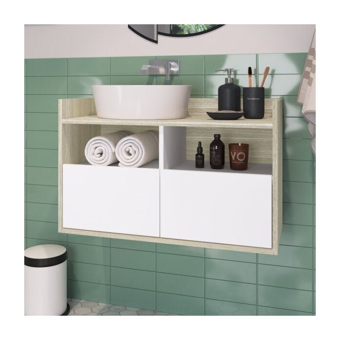 Gabinete Suspenso para Banheiro 2 Portas Baltazar Bege/Branco