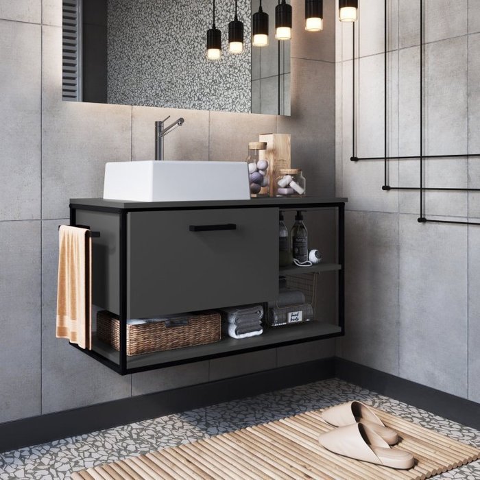 Gabinete Suspenso para Banheiro 80cm com Cuba Preto/Grafite