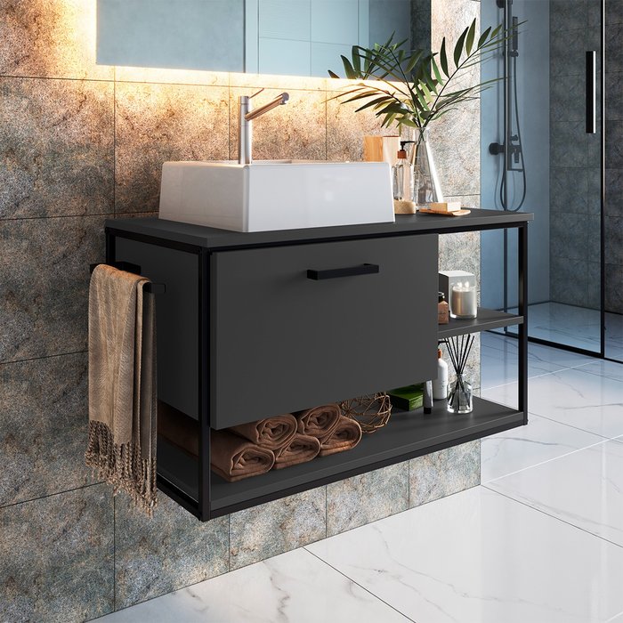 Gabinete Suspenso para Banheiro 80cm sem Cuba P1007 Placa e Ponto- Grafite Grafite