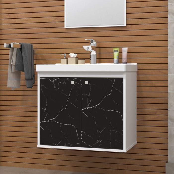 Gabinete Suspenso para Banheiro com Cuba 50cm Bergamo Preto