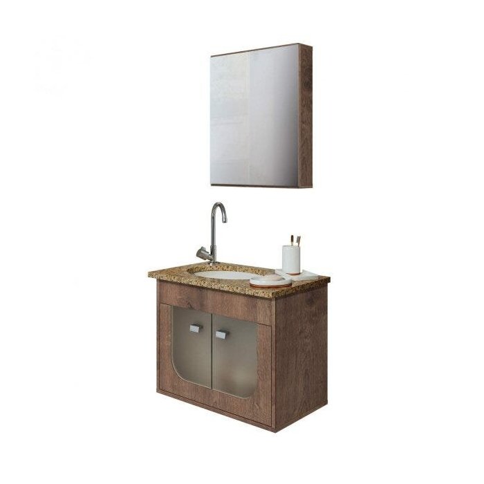 Gabinete Suspenso para Banheiro com Cuba e Espelheira 2 Portas Top Gaam Móveis