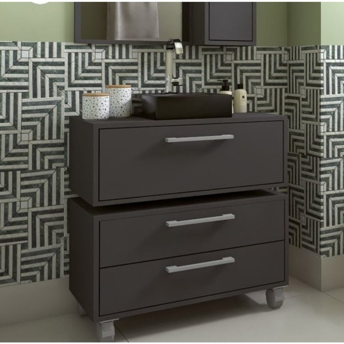 O gabinete suspenso com balcão para banheiro Alice, da Faema, possui gabinete com uma porta basculante com amplo espaço interno. Possui também um balcão baixo com rodízios que facilitam a movimentação do móvel na hora da limpeza e 2 gavetas. Acompanha cuba preta. Transforme seu banheiro em um espaço funcional e ao mesmo tempo lindo!