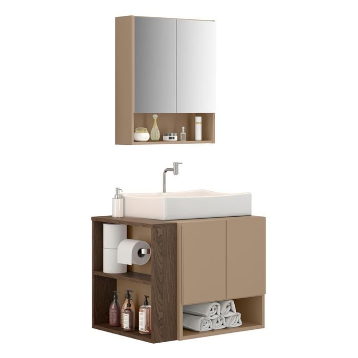 Com a cuba de design elegante, nichos laterais práticos e armário com espelho, ele une sofisticação e organização em um só produto.