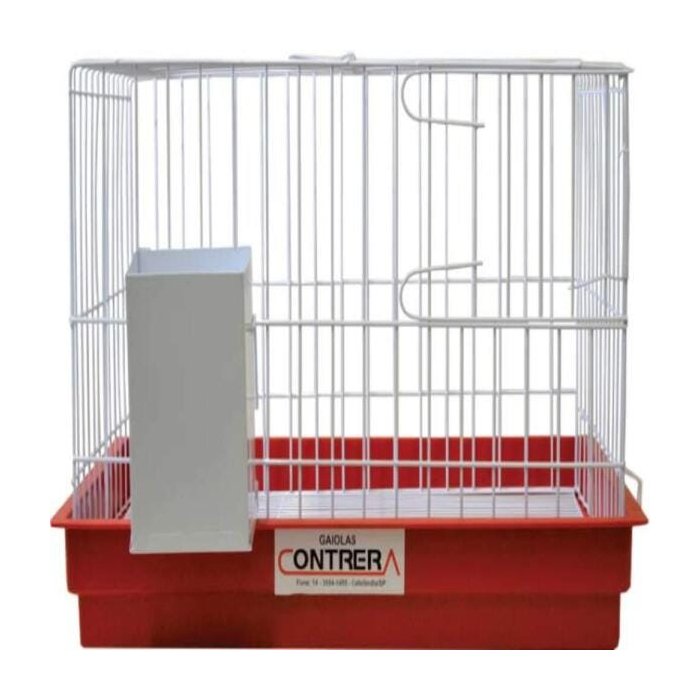 acompanha comedouro em chapa galvanizada, com reposição do alimento pela parte externa da Gaiola - porta com aberto frontal em toda a altura da Gaiola base com chapa galvanizada para coleta dos dejetos e piso com grade fixa
