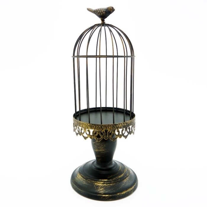 Gaiola com Passarinho Pequeno em Metal - 30x10 cm